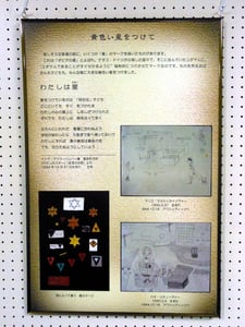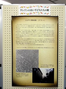 会場の隣のブースには、テレジン収容所の子どもたちが描いた絵のパネルも展示されていました。絵とともに、第二次世界大戦の背景とテレジン収容所の役割、収容所での暮らしを非常に解りやすく紹介された文章と写真も掲載されています。