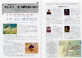 ナチスのテレジン収容所に残された4000枚の子どもたちの絵と数十篇の詩から生まれた、歌と朗読のコンサート。戦後70年の節目に平和への祈りを込めて開催します。